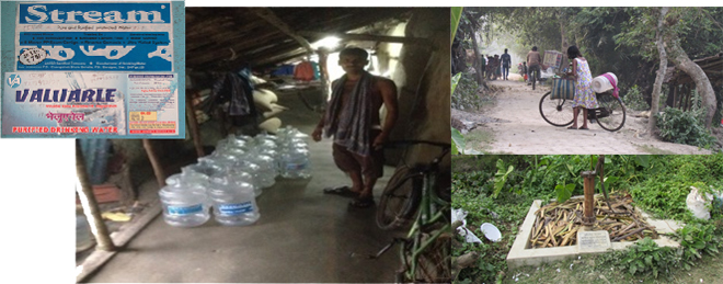 Similar to the issues faced in peri-urban Khulna, Tihuria village in peri-urban Kolkata is in need of better drinking water supply. In this case, however, the issue relates to the coverage and quality of water infrastructure either via piped supply or tube wells. In parts of the village without drinking water access, households rely on bottled water supply of unknown water quality. Our field visits investigated the institutions behind this issue and discovered a shift in government policy from groundwater to surface water projects as well as handover of infrastructure to local governments for management. However, the issues stem from quality of piped infrastructure and local government capacity to manage existing groundwater infrastructure. Similarly, regulations concerning bottling industries and capacity to enforce these regulations are also creating issues in a mushrooming local market for bottled water.